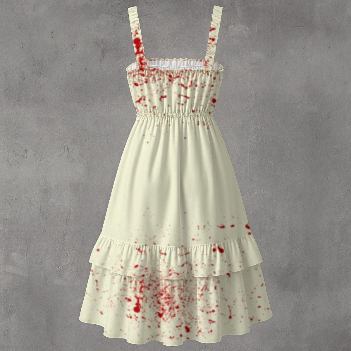Add a touch of Horror style to your meatsuit wardrobe with our Ruffle Hem Dress designed by Crummy Dumpster. Made from ultra-soft and breathable milk silk, this sleeveless dress features ruched details at the bust and wide straps for added comfort and style, while the ruffled hem adds a playful, creepy touch. Whether you're heading to the beach, a graveyard party, or just lounging in the moonlight, this dress is your go-to for effortless fall chic.