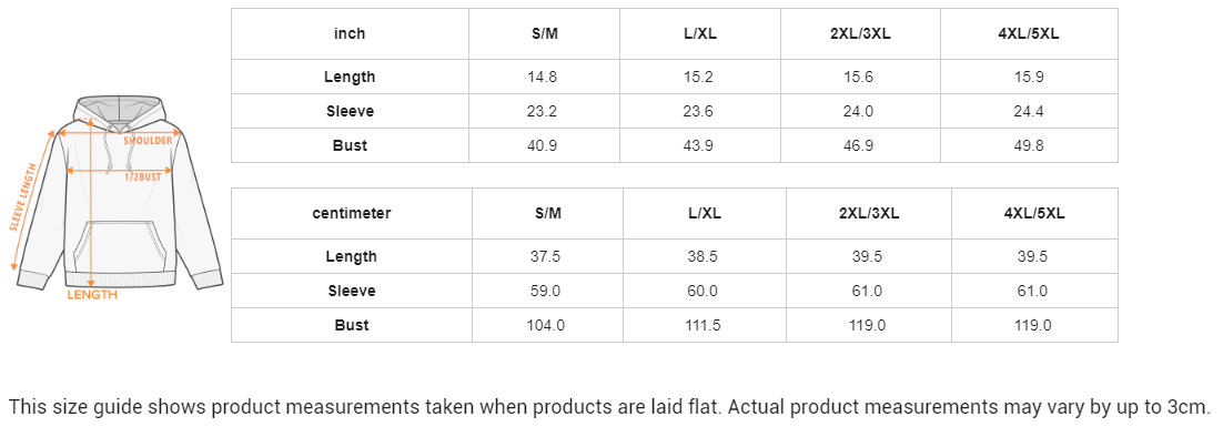 centimeter | S/M | L/XL | 2XL/3XL | 4XL/5XL |