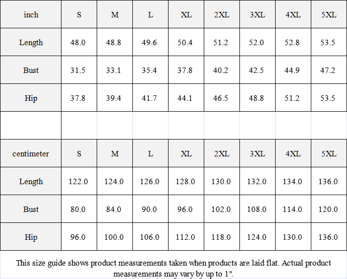 | inch | S | M | L | XL | 2XL | 3XL | 4XL | 5XL |