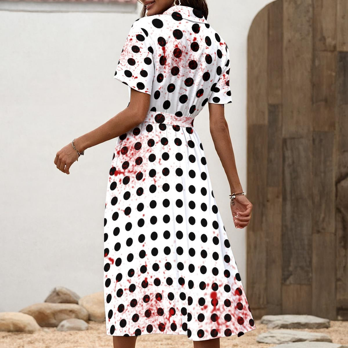 Perfect for spooky months, this stylish shirt dress designed by Crummy Dumpster is made from lightweight polyester for a comfortable yet stylish look. The slim waistband accentuates your figure, while the button front and classic collar add a touch of sophistication. The versatile design makes it suitable for both casual and semi-formal slaying occasions.