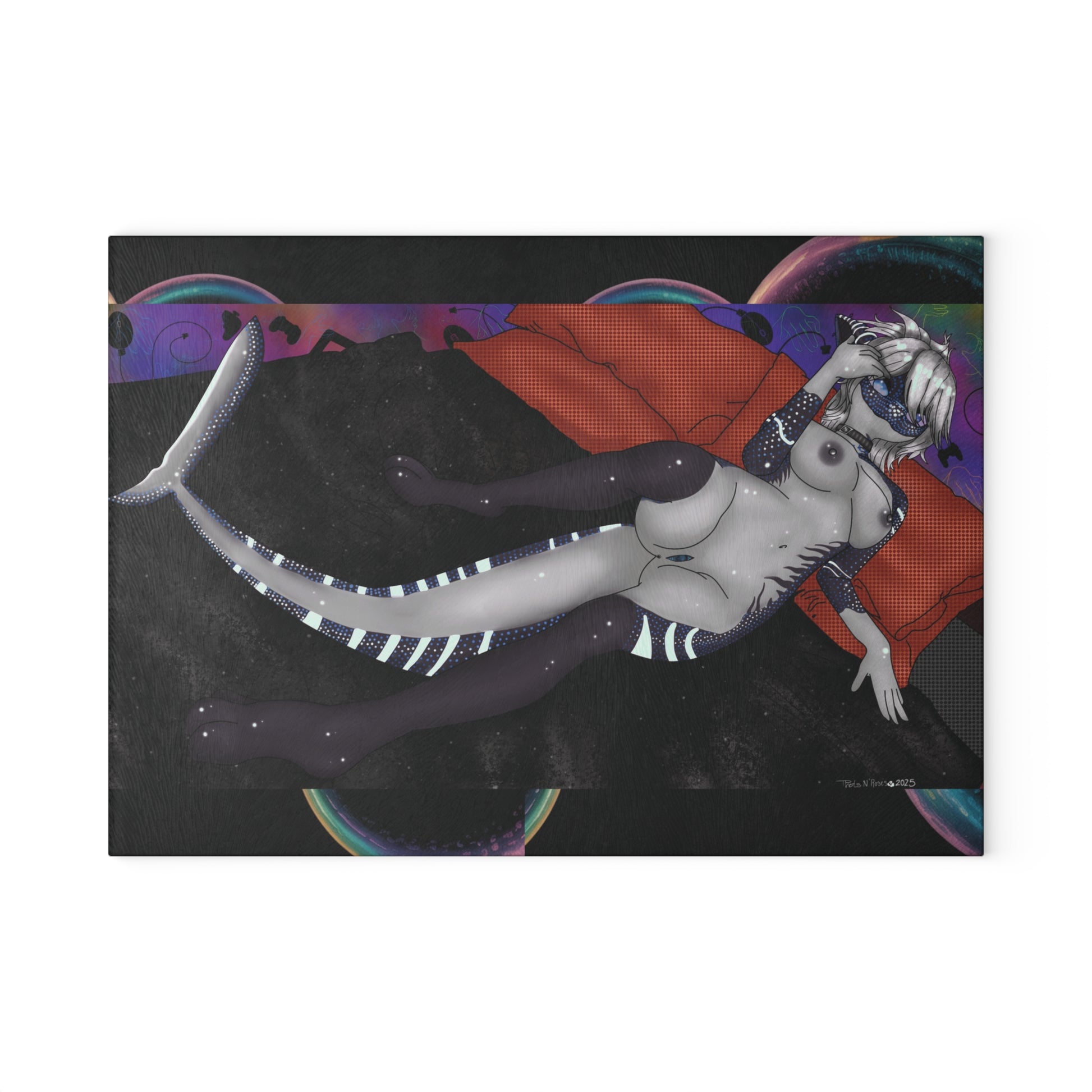 Bring a touch of character into any kitchen with this custom glass cutting board designed by Thots N Roses and Crummy Dumpster. Its tampered glass material is robust and helps prepare many a tasty meal for a long time to come. The textured surface makes it an ideal chopping, slicing, and dicing area. Available in two sizes: 8" x 11" and 11" x 15".