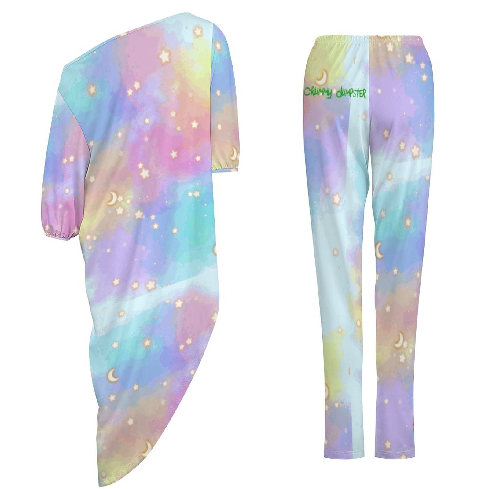 - Product Performance: Our Diagonal Shoulder Two Piece Set is a fashion-forward and functional choice for active women. Our Diagonal Shoulder Two Piece Set includes a long sleeve one-shoulder shirt and loose pants. The fabric on the Diagonal Shoulder Two Piece Set is moderately thick and soft, with a slightly elastic texture that is easy to wear and durable. The Diagonal Shoulder Two Piece Set features a classic design that never goes out of style and offers a sporty vibe with a perfect fit. The clean and stylish look is perfect for your indoor or outdoor activity.